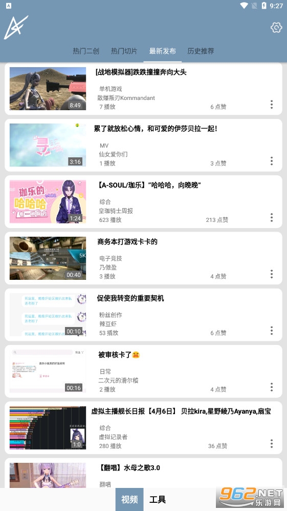 最新发布为B站最新发布的带有ASOUL相关TAG的视频,每次加载20个,下滑自动加载20个。
