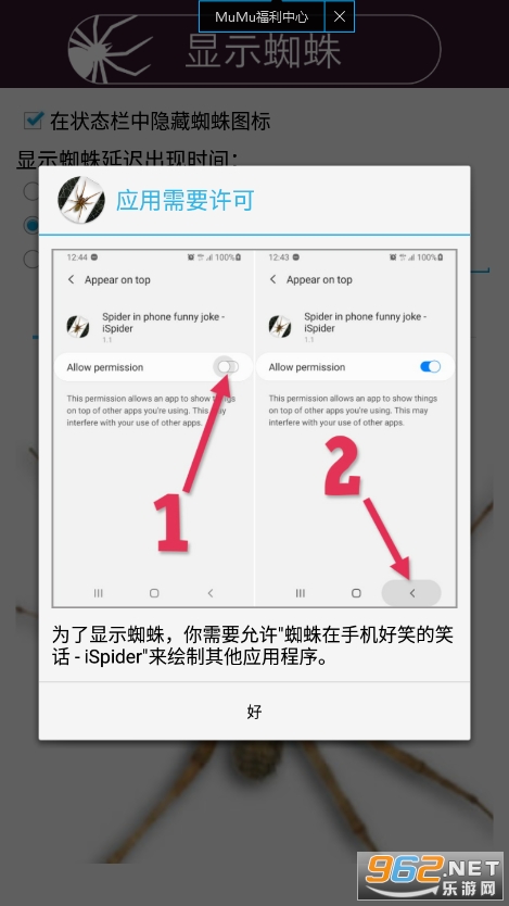 2、设置延时10秒显示蜘蛛,然后将手机还回给好友