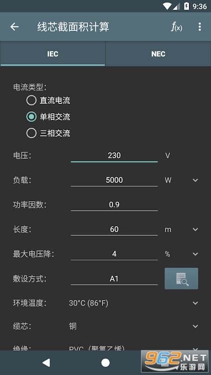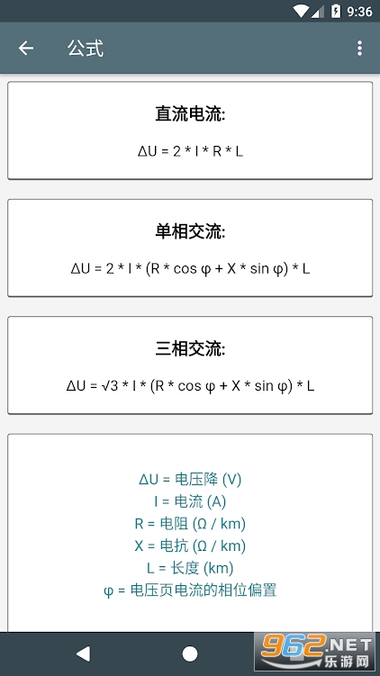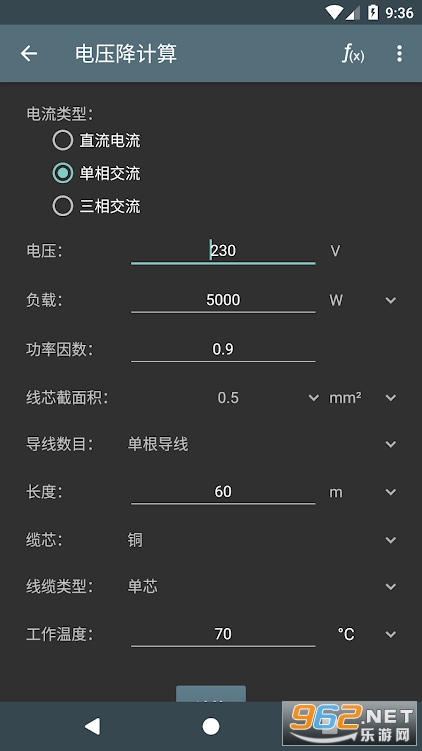 完全免费的一款电工计算器,用户打开即可直接使用。
