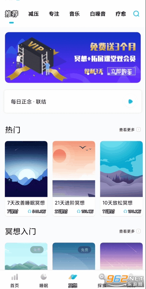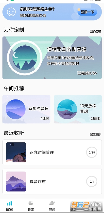 如今的社会不得不承认,有时候的生活压力很大,从而导致人们失眠、焦虑、抑郁等一些列亚健康的生理或者心理的状态变化,但仔细一想身边人哪个生活不是一样杂乱呢。这时,你就需要一个应用来帮你调整心态,而冥想自带有诸多的冥想课程和情绪修复白噪音,它可以让人在某个时刻放松下来,平静心情。