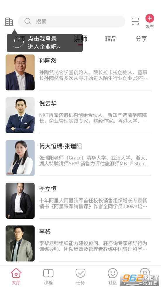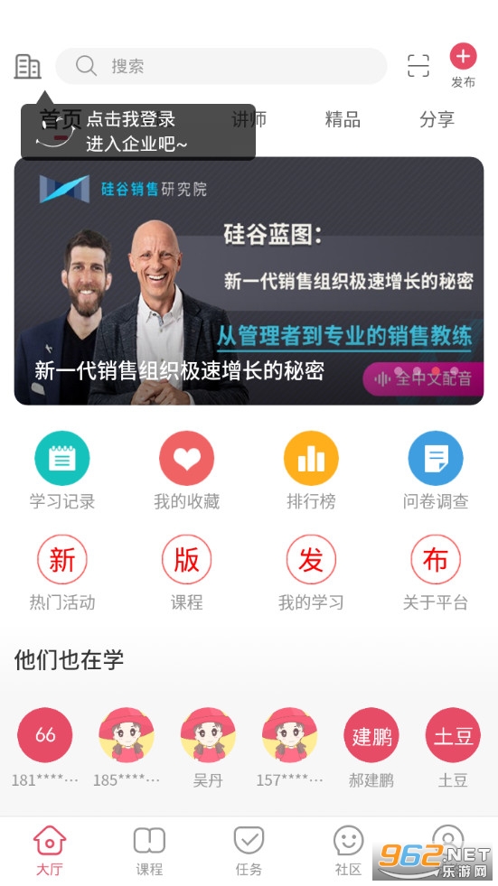 企业培训云平台,适用于餐饮、地产、医疗、金融、科技、服务等众多的行业,可以直接注册账号使用,有着丰富的教学课程,大量的导师在线,有需要的朋友可以下载试试。