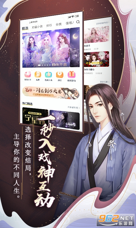 海量原创免费作品实时更新,众多分类任你选择:古风玄幻类、都市言情类、穿越宫斗类、架空类、现代明星类、悬疑推理类等互动小说。