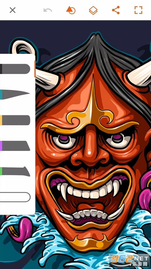 您可用高达十个绘图图层及一个相片图层,打造出复杂度、深度和广度,还能复制、合并、翻转、放大缩小及调整每个图层的不透明度。
