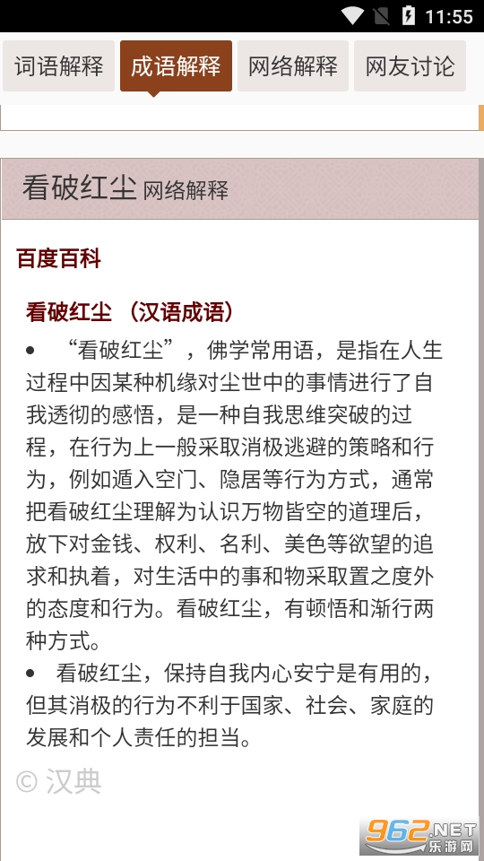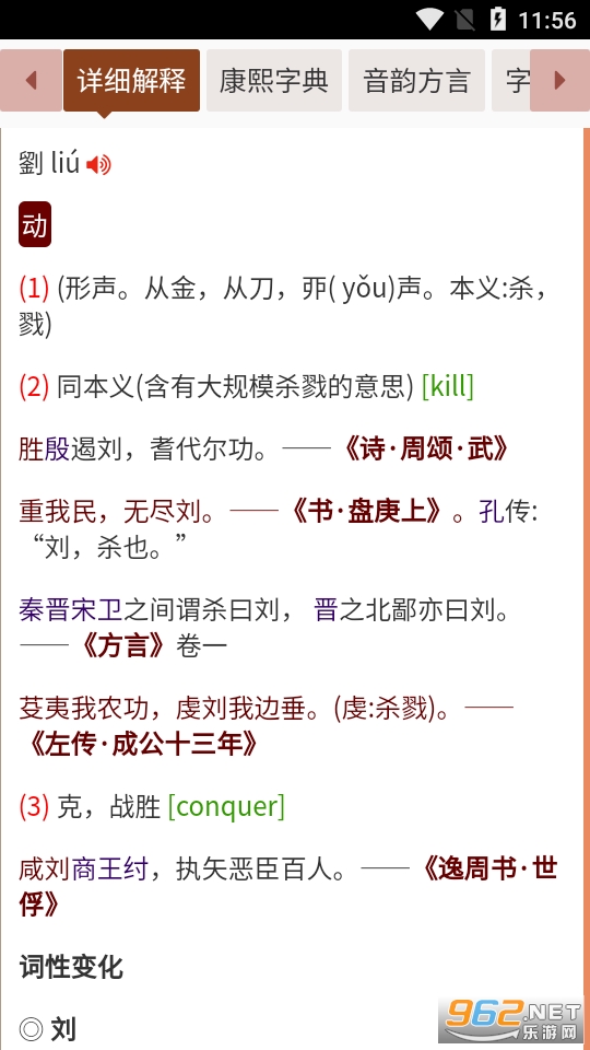 汉典网app是款非常良心的汉语学习软件,相当于手机版的汉语辞典,有着巨大容量的字、词、词组、成语及其他中文语言文字形式的免费在线解释,汉典的宗旨是介绍中国文化、历史和语言,为那些在中文学习、研究方面有兴趣的人提供帮助与服务,并探讨中文语言文字使用的规范和标准,释义很全,是学习古文的好帮手。