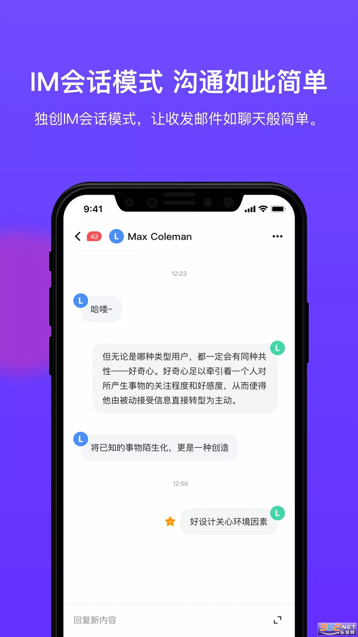 只需轻松点击来信人图标,即可瞬间切换到该联系人的所有来信邮件列表,并同时支持IM对话模式查阅你和Ta的所有往来邮件互动。