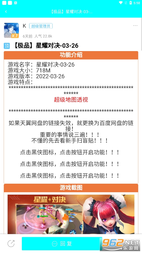 《黑侠app》又名黑侠apk,是一款全新的游戏论坛app,既可以充当游戏盒子,内涵丰富的单机游戏和手游破解资源让你免费下载,又能够扮演游戏贴吧,论坛的角色,让大家可以在这里随时随地加入各种热门的游戏话题讨论,发帖和其他的游戏爱好者们互动,还为玩家提供了许愿平台,让你许愿想要的游戏,说不定就可以实现!