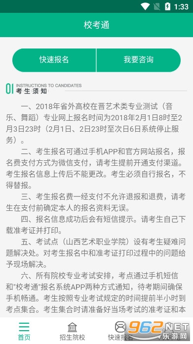 面向山西省本地和外地报考考生们打造的一款艺考网上报考平台,了解各大院校的具体招生信息、分数线及录取指标,更好的去规划和完善自我的具备条件,能够让自己在学习上更快人一步。