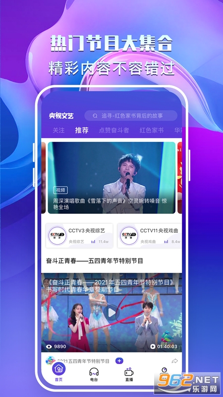 2、央视文艺让你可以快速观看到各种你喜欢的节目内容。