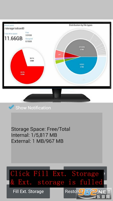《fullfillstorage app》是一款非常不错的手机性能测试类的工具,工具的用处在于做手机开发时,通过填充数据让内存占满来测试手机在低存储的表现,来进行测试的用法,同时可以进行填充的恢复让手机回归原状,感兴趣的亲们赶紧下载吧。
