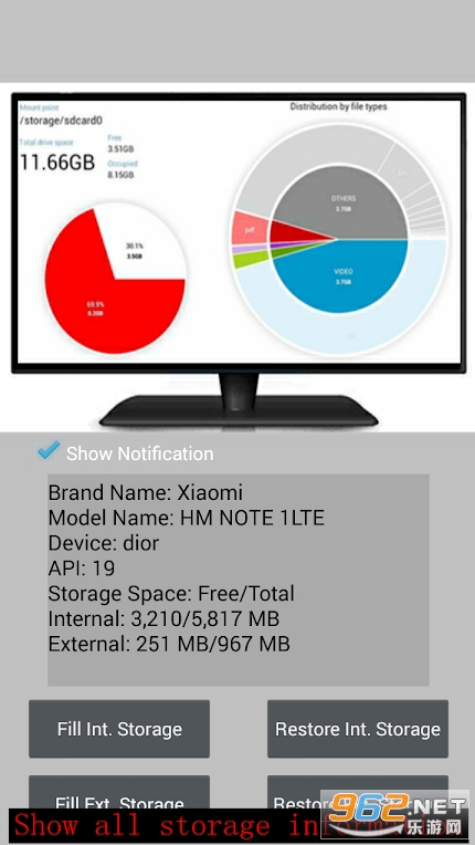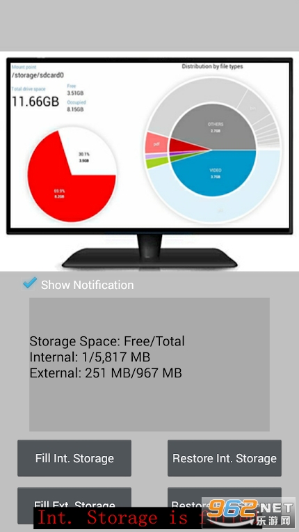 单击“Restore Int.Storage”以删除内部存储填充数据。