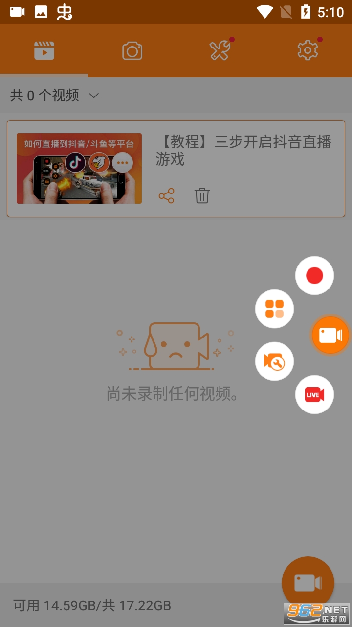 7、设置完成后,开启悬浮窗,就可以一键录屏啦。也可以在视频选项卡下,点击【录制】按钮,开始录制工作。