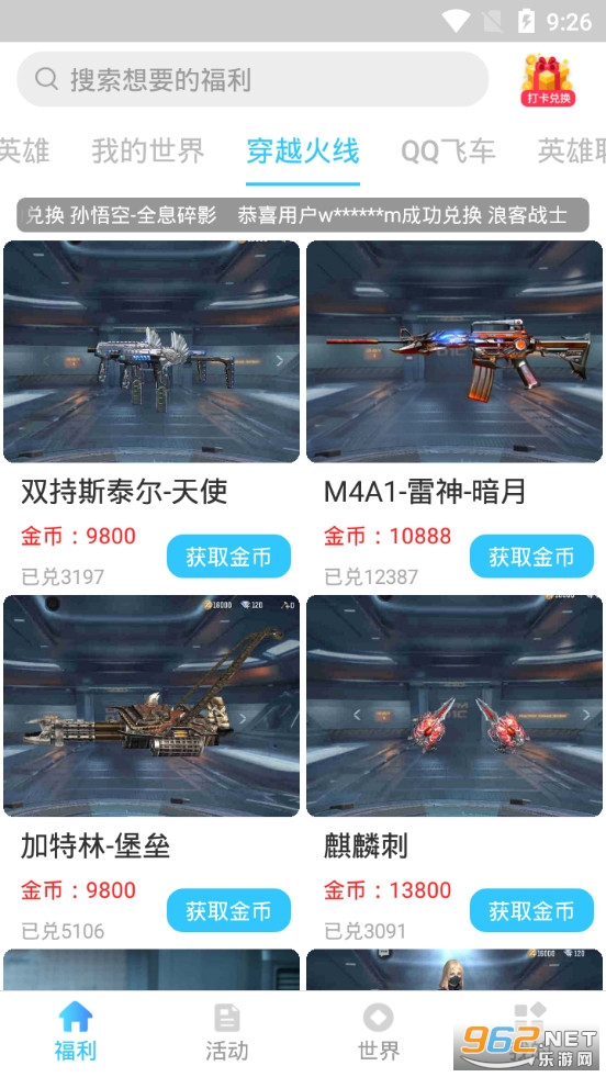 3、【皮肤兑换】人人都能领取,快速兑换皮肤