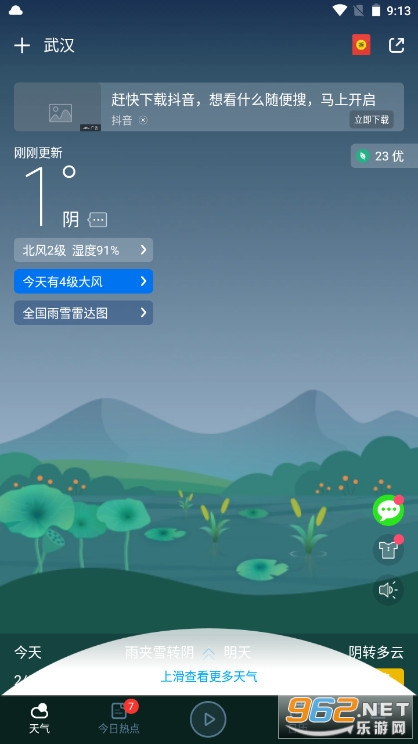 让你实时掌握身边的天气内容,随时关注的天气变化情况。提供中国及世界各地城市、地区最新的当天及未来六天的天气情况。您可以随时查看所关心的城市天气情况,方便您随时快速获取最新资讯。特殊天气提前发送预警信息,帮助用户更好做出生活决策,从容应对各类天气状况