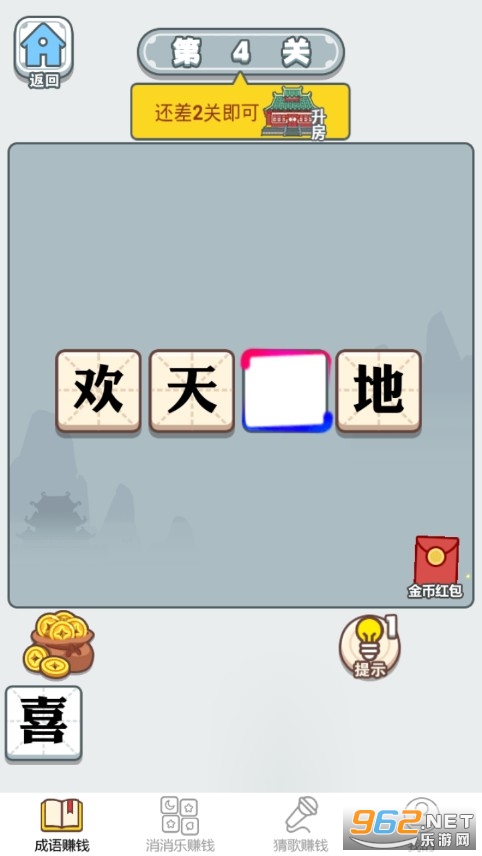 其实就是成语题材的休闲益智类游戏,里面的玩法非常多,也都是一些比较常见的成语益智闯关玩法,不断挑战不断答题闯关去领取到更多的金币和红包,一路上加官进爵平步青云实现你的远大目标抱负,并且在这个过程中累积自己的成语词汇。