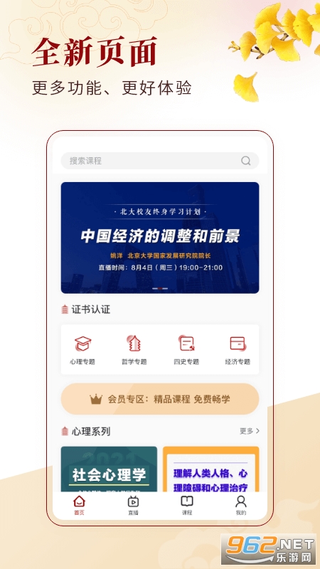 一款不错的高质量在线学习软件,在这里有着各个知名的北大教授的课程可以进行学习,还有着免费的公开课可以学习,每周还有直播的课程,如果你想获取高质量的学习课程的话可以来这款软件中试一试。