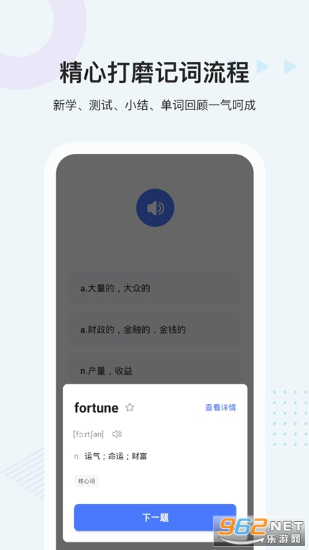 精心打磨经典学习流程,将计划学习的单词分成小组,小组内新学、测试、小结、单词回顾一气呵成。一个流程搞定英语单词。