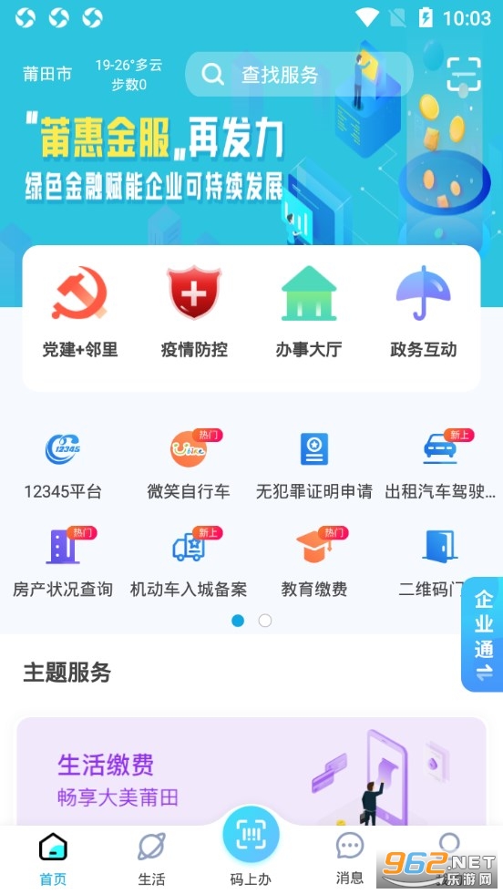 莆田市市民都在使用的生活服务客户端软件,生活中的各个方面都能照顾到,无论是线上办事还是生活缴费,更或者是医疗健康和交通出行,这款软件都能照顾到,只要你生活在莆田,就少不了这款软件,推荐各位居住在莆田或者准备前往莆田旅游的用户下载使用。