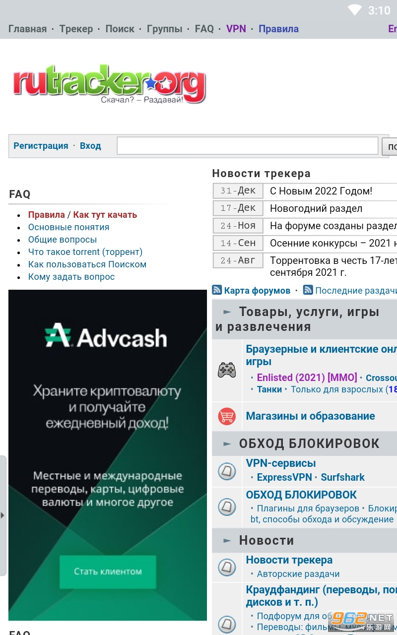 1、首先我们需要进入rutracker网(点击进入),该网址目前仅支持PC访问,手机用户无法点击访问。