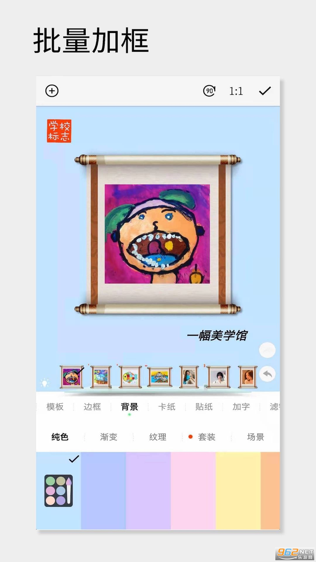 VOUN相框档次很高,效果挺好的。但是安卓没有对应的,下了几个,发现都是假的,广告或者是骗流量的,很生气,于是自己写了这个。当然VOUN一些很细腻的,我学不来,技术不行或者安卓平台不容易实现。但我做了些自己能做到的,比如,可以增加Logo或者二维码,比如可以盖一个印章,更像是国人的作品了。后面还增加了批量加框功能、拼图功能和裁切功能。