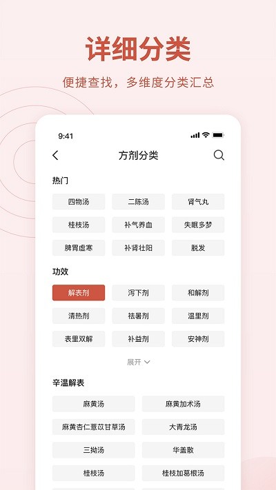 4.所有的药方都根据功效进行分类,可以很方便的找到适合自己的药方。