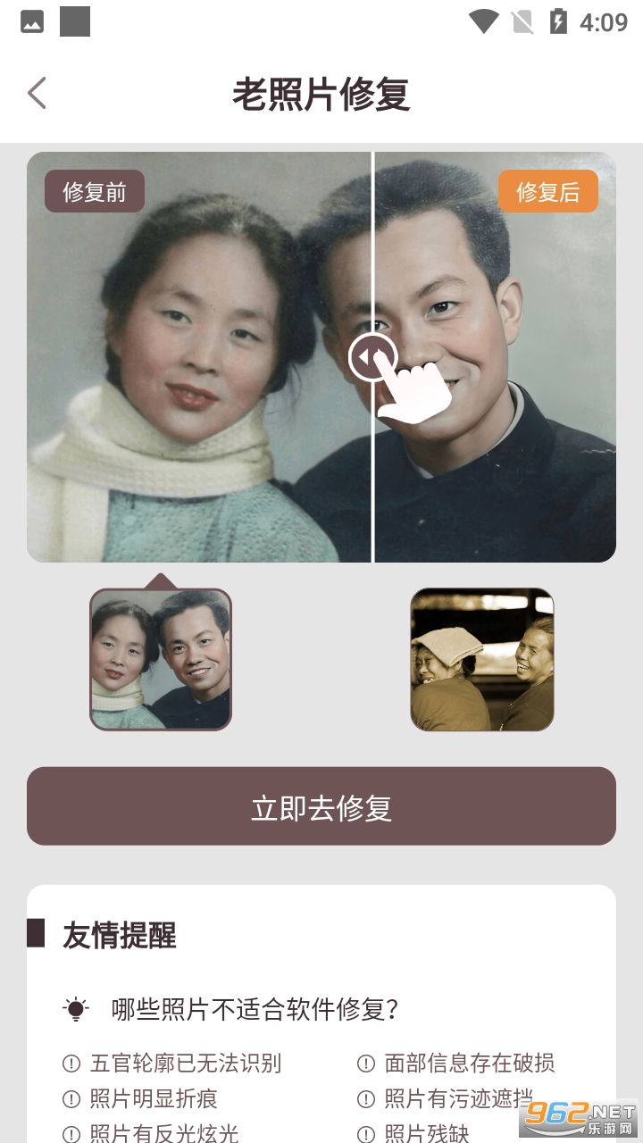 3、修复对比明显,一眼就可以分辨修复的效果图,让用户更加相信软件的技术,使用软件进行照片的修复。