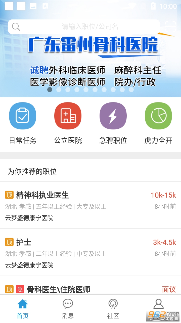 一款专业提供医疗卫生行业人才招聘服务的app,医院、投资集团、诊所可以在app招聘医生、护士、药师、技师。求职者则可以对自己感兴趣的单位投递自己的简历。