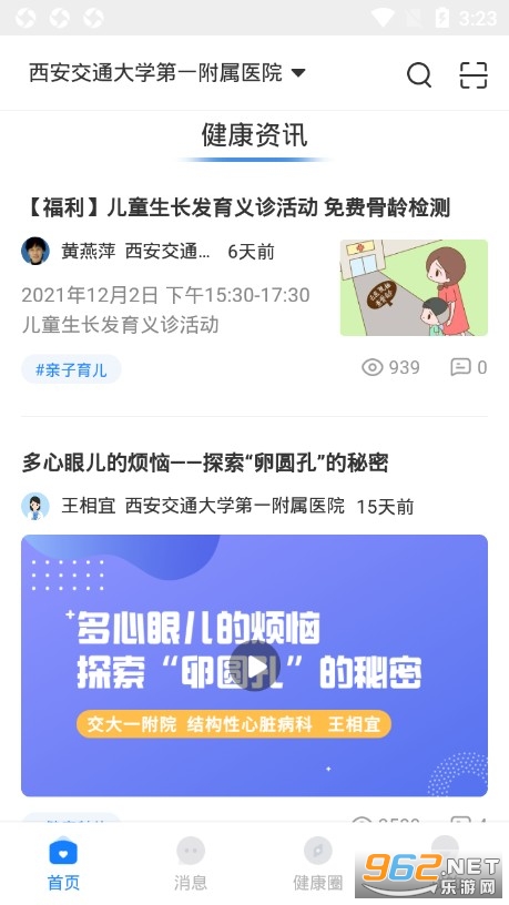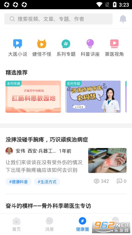 --健康圈:专家讲堂,科普文章,健康动画等健康咨讯,为用户提供全面的健康关怀,让用户随时随地能接收医生的健康建议。