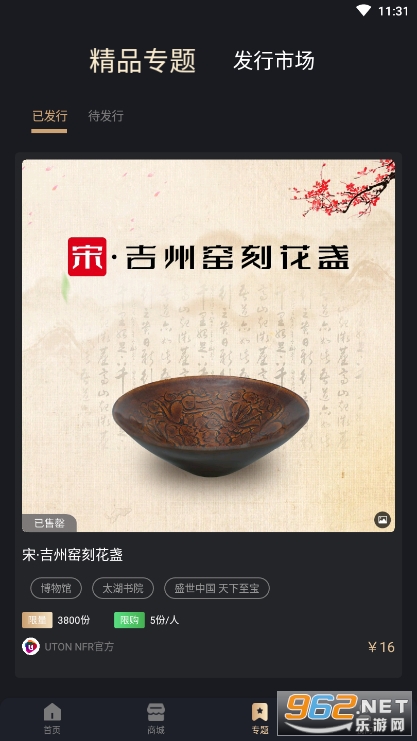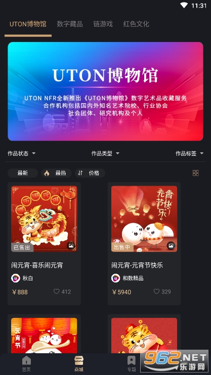 《uton nfr》是是上海和数软件有限公司打造的新一代NFR艺术品交流平台,结合了区块链+元宇宙的元素,平台每天都可以为大家提供NFR艺术品,让你随时随地在线选购收藏,每个艺术品都有自己独一无二的NFR确权证书,还有专业的制证功能,为你提供便利,推荐给对艺术品收藏感兴趣的朋友!