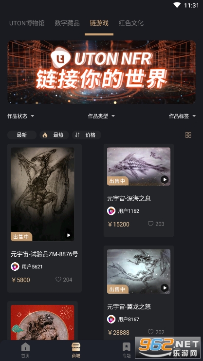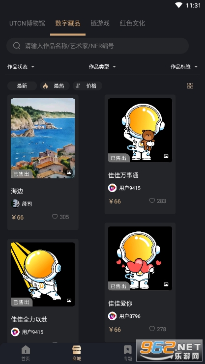 全新的艺术品交易平台,里面拥有非常多的NFR作品让大家在线挑选,丰富的功能,专业的证书,无论是购买还是售卖NFR作品,都非常方便!