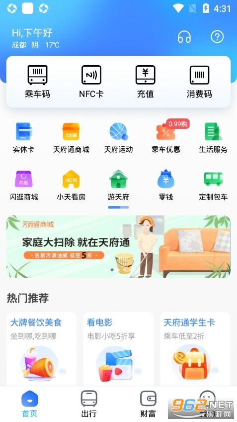 天府通APP是成都天府通金融服务股份有限公司官方推出,为成都天府通用户出行提供便捷的掌上服务。
