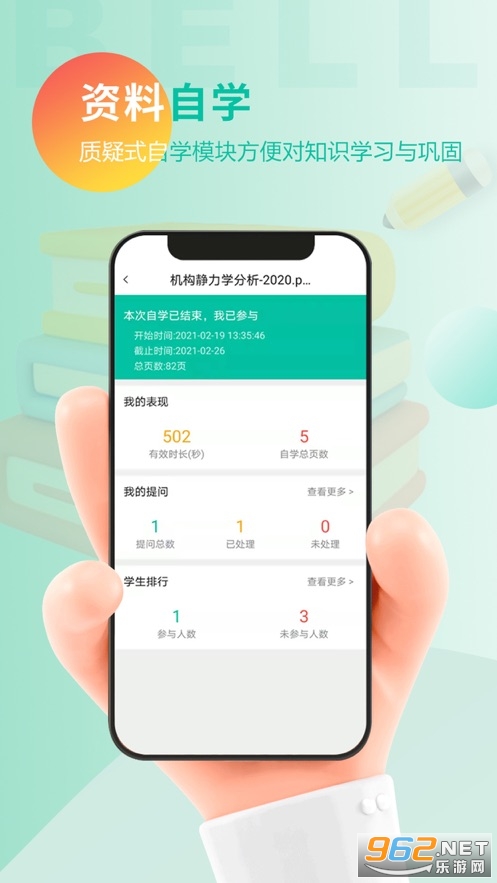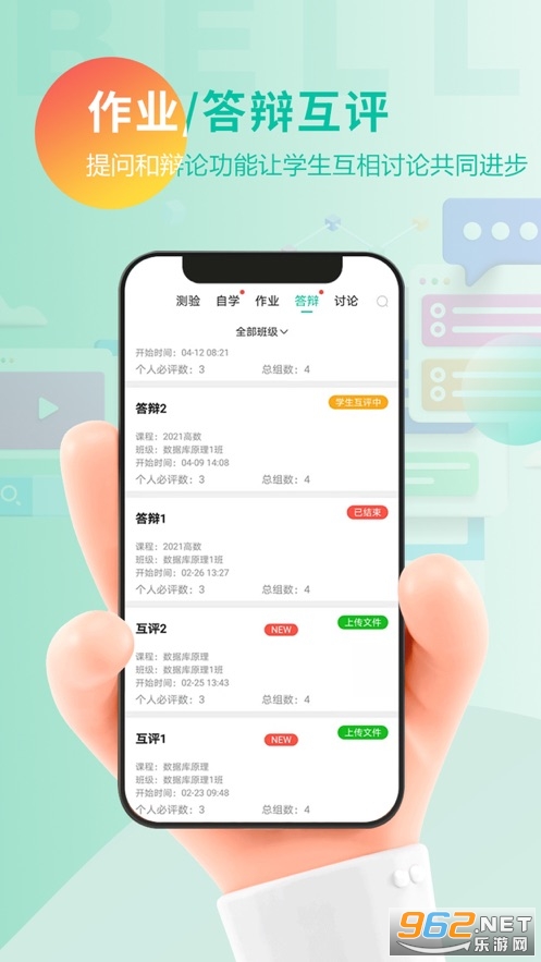 贝尔智慧教育是一个面向高校教育的整合式线上化APP,主要功能包括课堂互动、随堂测验、课后自学、作业互评等功能。