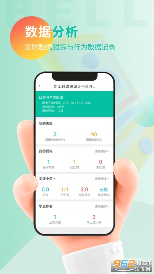 在学生使用APP的同时,系统完整地记录了学生的学习过程数据,这些数据可贝尔教师提供全方位的分析依据以及教学评价标准。