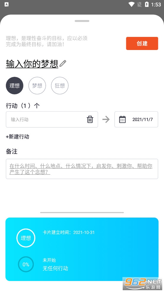 一款超好用的记录软件,在生活中你可能产生各种各样的想法,将这些想法记录下来,选择一些实现他们,烫自己根基有行动力,将一个念头变成目标然后变成现实,这就是这款软件的目标。