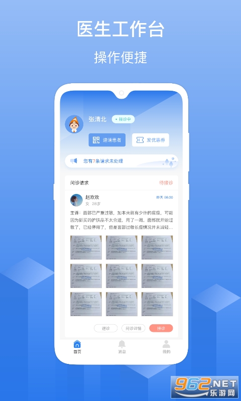 优麦云医院医生版,皮肤科医生在线执医的专属工作平台。国家卫健委多点执业合法备案,为皮肤科医生提供在线问诊工具,高效的患者管理,体现医生价值,收入合理阳光。