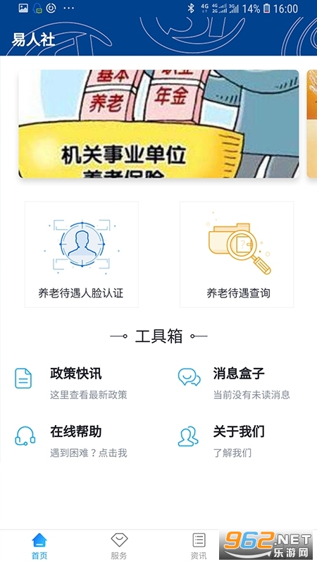 2、养老待遇人脸认证,养老待遇查询,政策资讯等诸多功能;