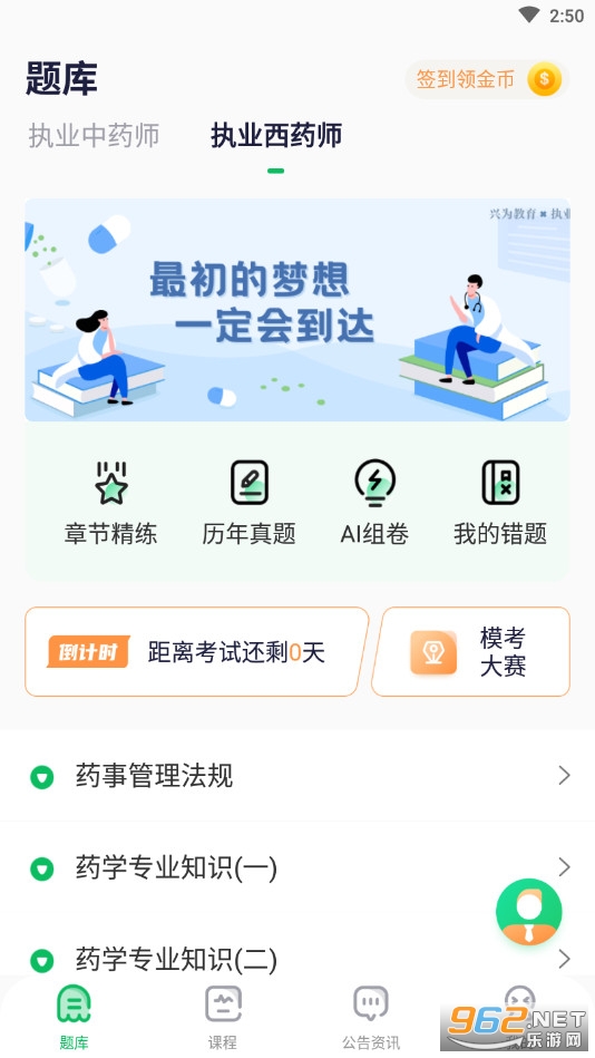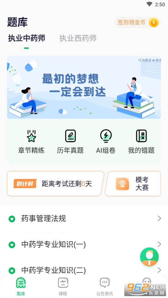 拥有执业中药师、执业西药师脸大板块,根据自己学习的科目选择;