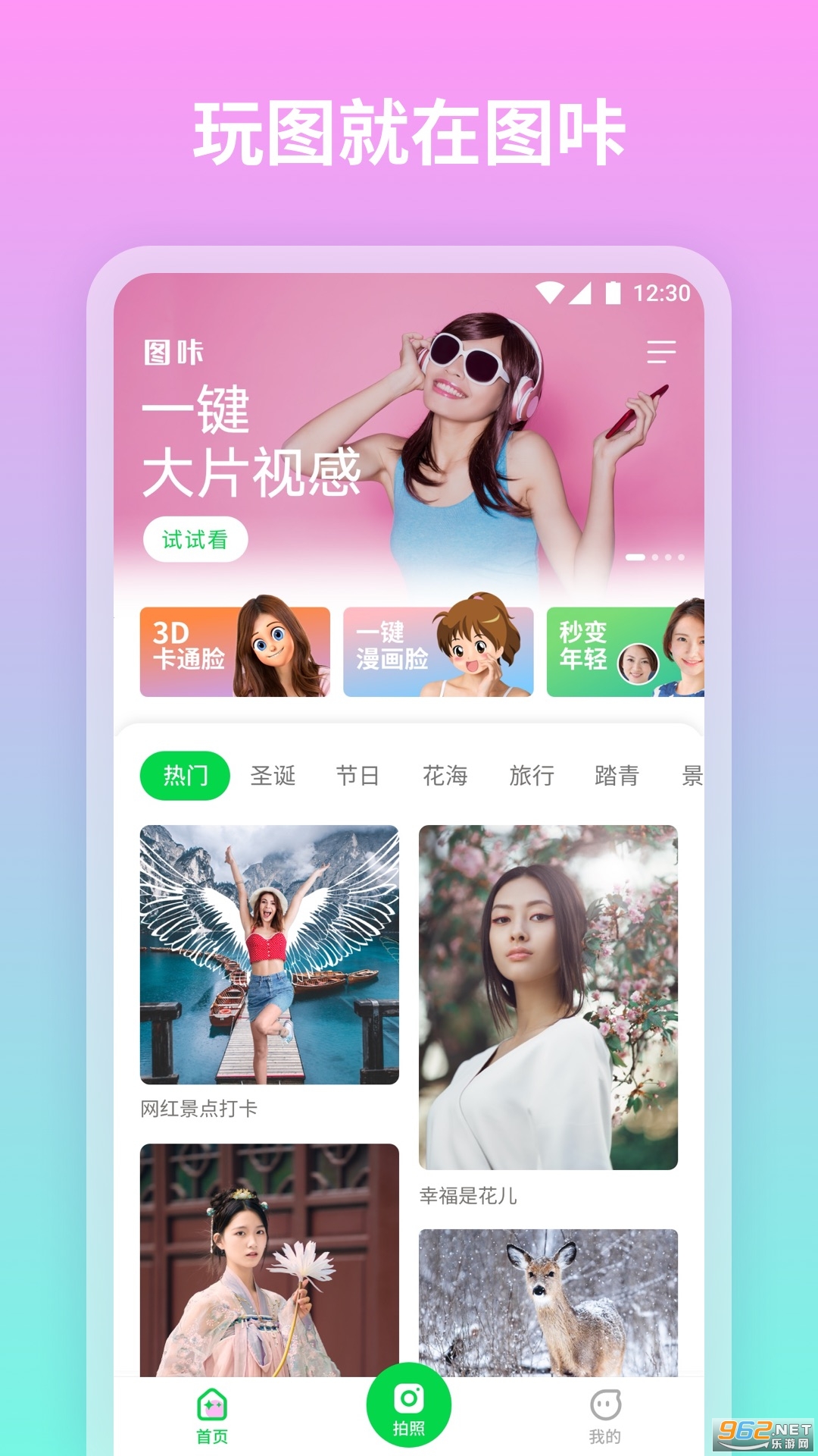 来图咔,让照片变得更有趣!图片编辑也可以如此简单易用,借助AI帮您轻松一键成片!通过人像换背景,任何照片都能变得妙趣横生!内置超多精美模板,还有相框、滤镜等丰富功能,让您的照片细节满满~