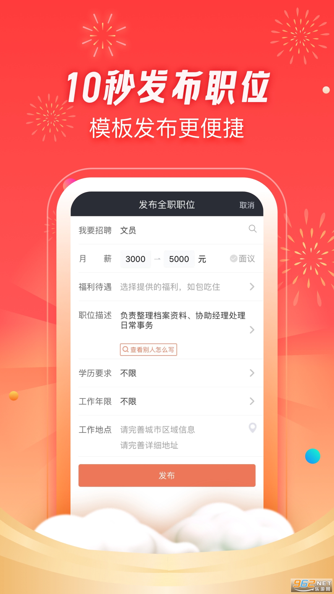 【10秒快速发布】销售、厨师、客服、司机、服务员······职位描述不用手动写,全行业的个性化模板,选中职位发布,10秒就搞定~