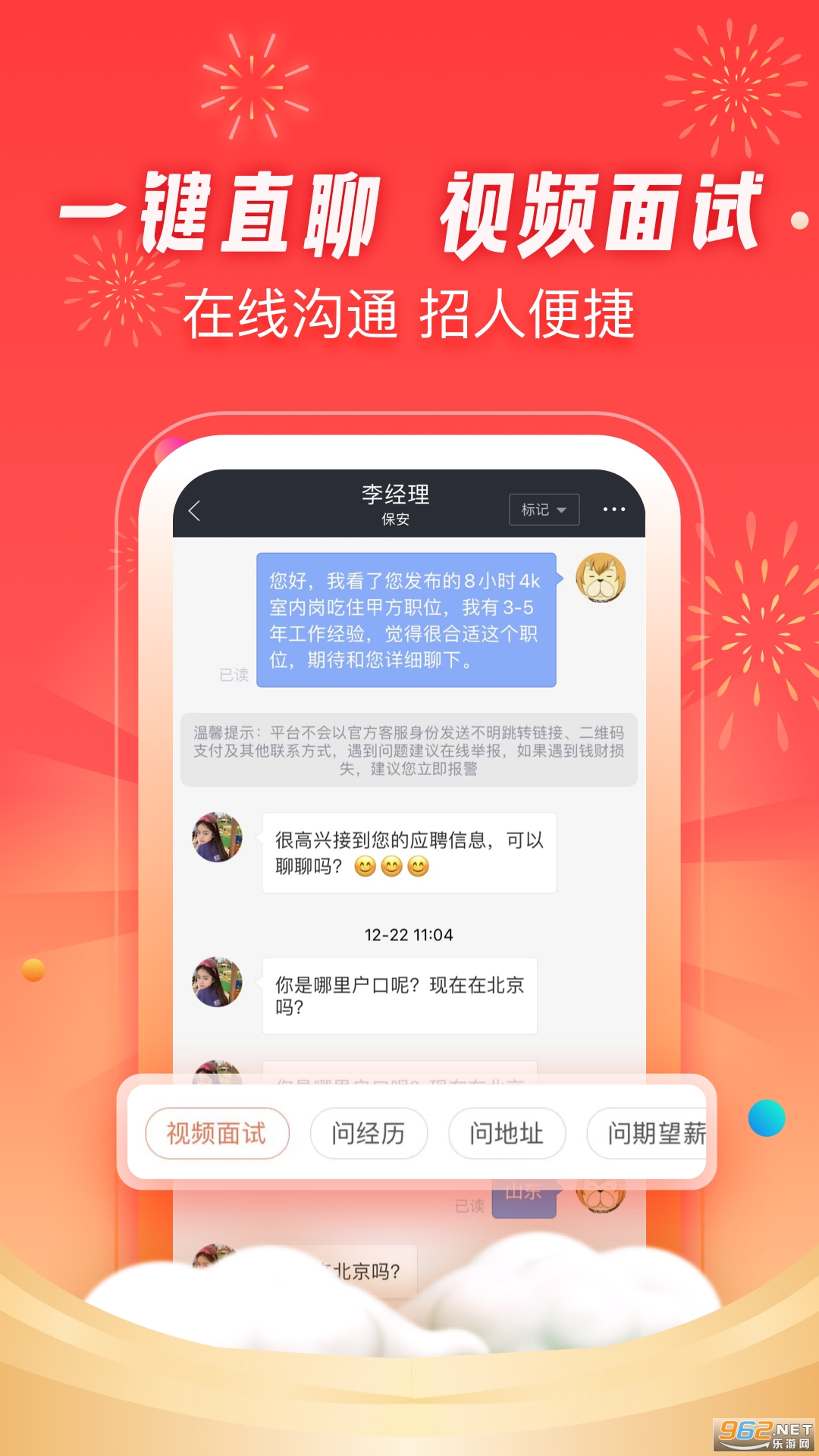【在线沟通、实时邀约】同求职者在线视频,直接面试,最快当天入职~