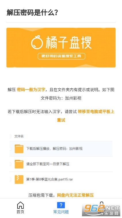 橘子盘搜是一款简洁,高效的磁力种子搜索神器,可以搜索和下载电影、电视剧、种子、图片、综艺、软件、动漫、教程、游戏等资源