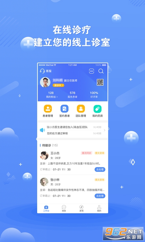 【个人签约】医生以个人品牌进行患者管理,为患者提供在线咨询、诊后病历维护以及医嘱的执行。