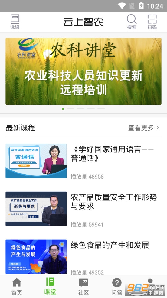 课堂板块目前课程数量超过12万余门,覆盖了大田粮食作物、水果、蔬菜、水产、畜牧、家禽、植保、种植、养殖、飞防、园艺以及经营管理多个领域。其中小麦、玉米、水稻、葡萄、苹果等课程获得东南亚农业国家农业博览会展映。