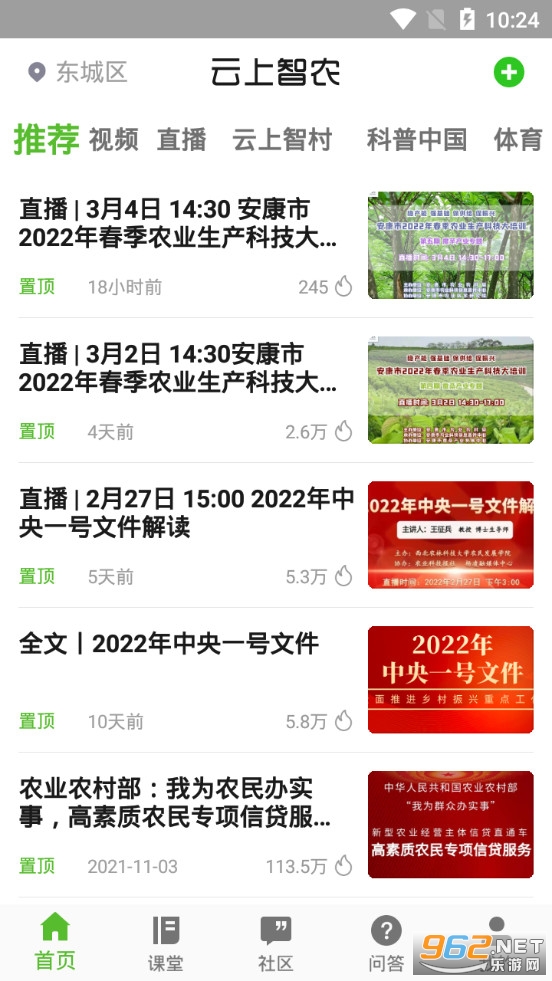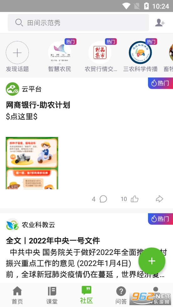 目前云上智农覆盖资讯、课堂、社区、问答等四个版块。