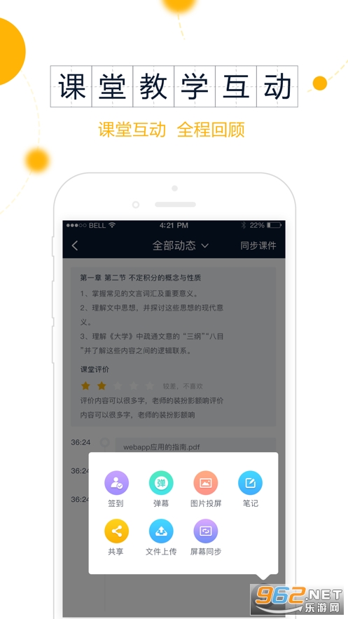 支持课堂答题投票、学习状态反馈、投屏互动、课堂动态记录等课堂教学互动应用,让课堂学习更有趣、复习更有效