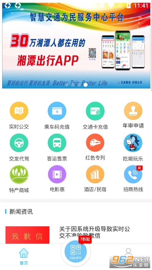 软件已实现扫码优惠乘公交、实时公交查询/线路换乘规划、交通卡充值/年审、全省客运售票、代驾服务、红色专列、周边游/旅游,精选湘潭(吃喝玩乐)、特产特惠商城、电影惠、酒店/民宿等便民功能!