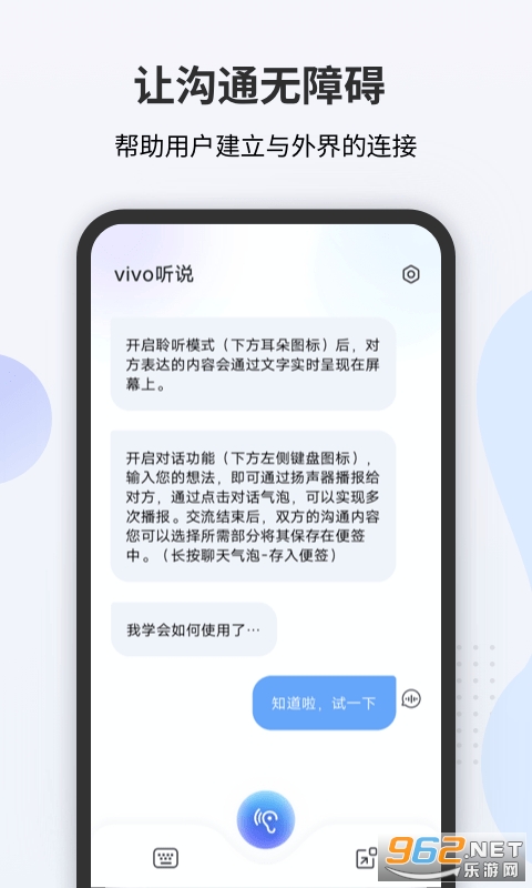 vivo听说App是一款集即时语音转文字、文字广播等作用的软件,可满足客户没有便捷讲话或倾听状况下,完成无阻碍沟通,小窗方式协助客户在多情景下无阻碍沟通,还能够自定人物角色,让沟通更简易~