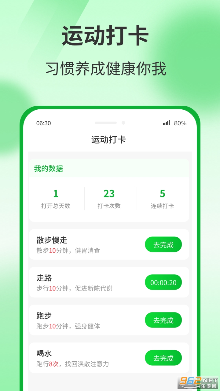 你完全可以将这款软件当成自己的运动打卡助手,习惯的养成是需要时间慢慢培养的,每天制定一个小目标,认真去完成你的目标,跑十分钟或者走半个小时路都可以,软件会记录你的步数、运动轨迹、消耗的卡路里等等数据。