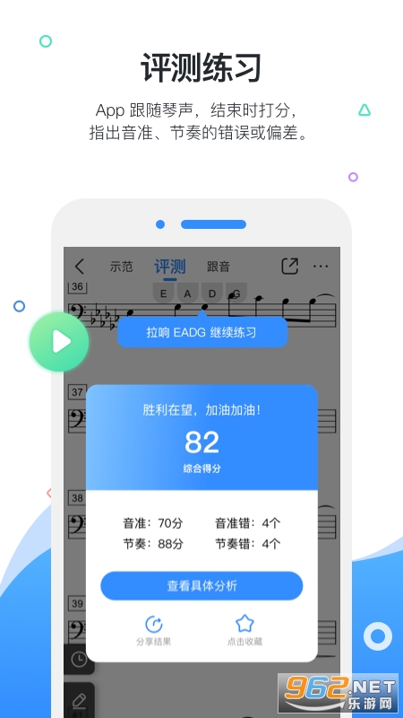 -练习结束后,弹出本次练习的评分。可查看错误详情,精确到每个音符的音分、速度、节奏上的偏差。