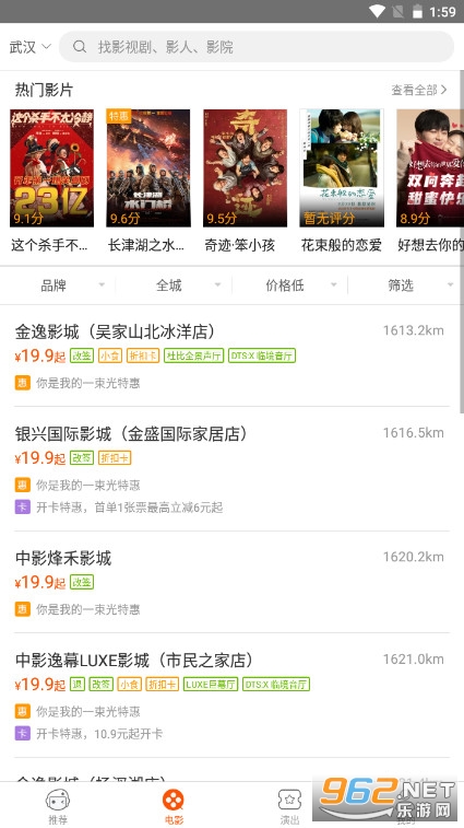 1.覆盖全国7500家黄金商圈影院,享受极致低价的购票体验