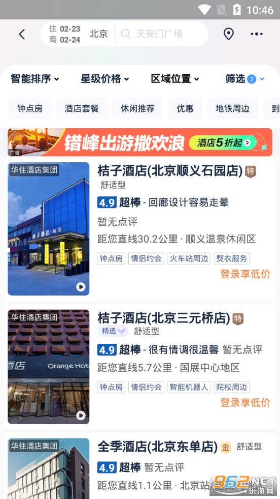 --快捷搜索:根据自己的需求,按照价格星级、房型设施、区域位置、住客评价、促销优惠等个性化快捷筛选;